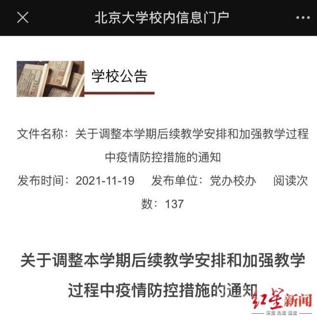 除了就地過年的倡議,紅星新聞?dòng)浾咭舶l(fā)現(xiàn),不少高校也開始了提前放假。北京部分高校發(fā)布通知,調(diào)整2021至2022學(xué)年秋季學(xué)期期末考試及寒假安排。包括北京大學(xué)、中國(guó)人民大學(xué)、北京物資學(xué)院等高校均發(fā)出了提前放寒假安排。