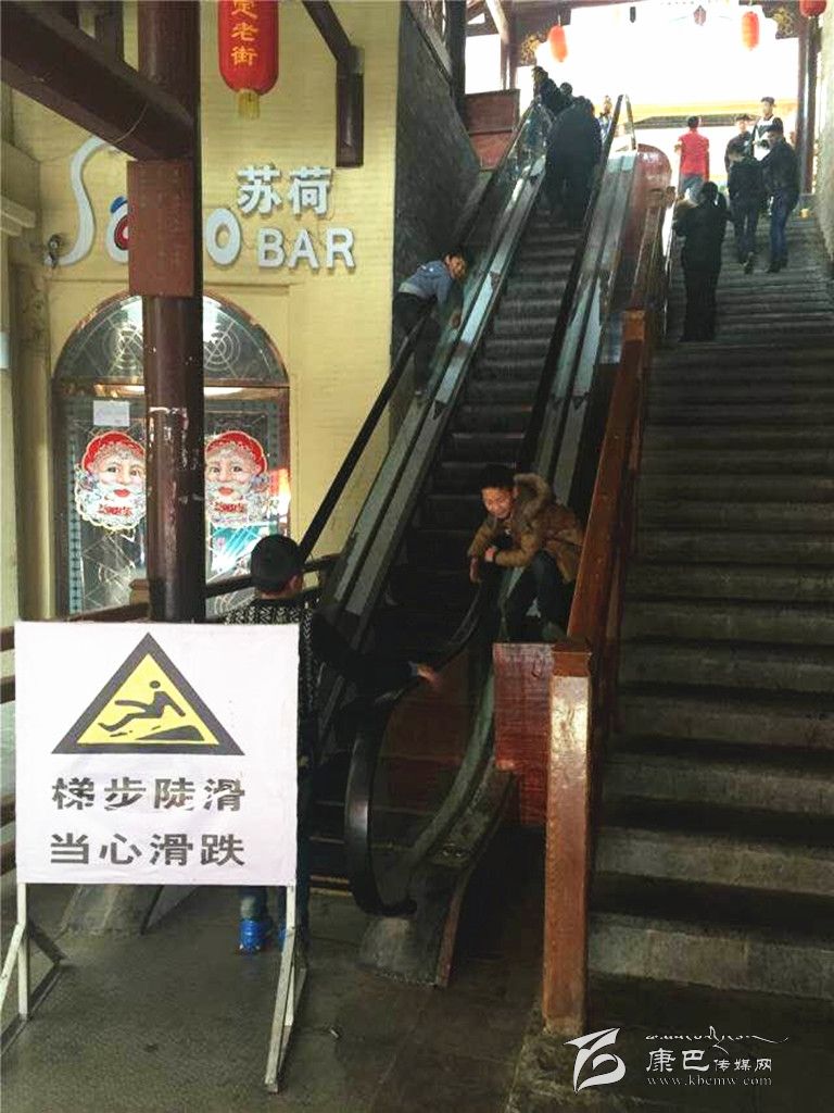“唰,唰,唰”一群10歲出頭的孩子們從停運(yùn)電梯的扶手上飛速滑下,這是記者在康定“溜溜城”商業(yè)步行街下方出入口處電梯看到的一幕??匆娪浾咴谂恼眨W(xué)四年級(jí)的小亮(化名)絲毫沒(méi)有慌亂,嫻熟的翻越動(dòng)作表明這里是他和朋友們的常來(lái)之地。記者目測(cè)電梯長(zhǎng)度約有60米左右,上下落差較大,在電梯扶手上玩耍的孩子極易受傷。小亮和朋友們卻不以為然:“這個(gè)梯子好像游樂(lè)園里的激流勇進(jìn),好好耍哦!”孩子們完全忽略了潛在的危險(xiǎn)。
