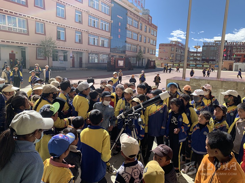 “我看到木星了!”日前,在理塘縣第四完全小學(xué)的操場上,“筑夢星空”首屆天文社團(tuán)成員、六年級(jí)三班的格絨拉姆在杭州市錢塘區(qū)新灣小學(xué)支教老師王建煜的指導(dǎo)下,通過天文望遠(yuǎn)鏡看到木星時(shí),不由得大聲叫了起來。